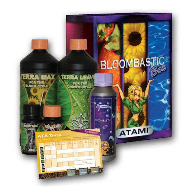 A Atami desenvolveu uma caixa completa para todos os cultivadores iniciantes. O conjunto foi produzido para um metro quadrado em terra e contém 1 litro de Terra Leaves, 1 litro de Terra Max, 250ml de Rootfast, 250ml de Atazyme, 500ml de Bloombastic e o esquema de fertilização da ATAMI.