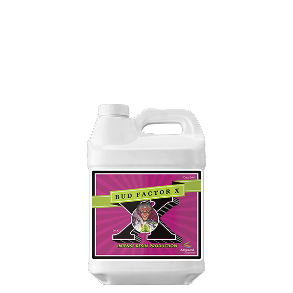Bud Fator-X contém ingredientes bio-activos que melhoram as qualidades inerentes das plantas, induzindo a produção máxima de terpinóides, resinas e óleos essenciais. Bud Fator X também foi desenvolvido para maximizar a produção e não só a qualidade das culturas. A combinação equilibrada de ingredientes altamente bio-activos, maximizam o conteúdo de resina, permitindo também maximizar a taxa de fotossíntese quando as plantas são forçadas a “dormir”. As formas reduzidas de nitrogénio e Vitamina B ajudam ainda mais ao desenvolvimento das raízes, especialmente quando se utiliza Bud Factor X em conjunto com Piranha, Voodoo Juice, e Tarantula.