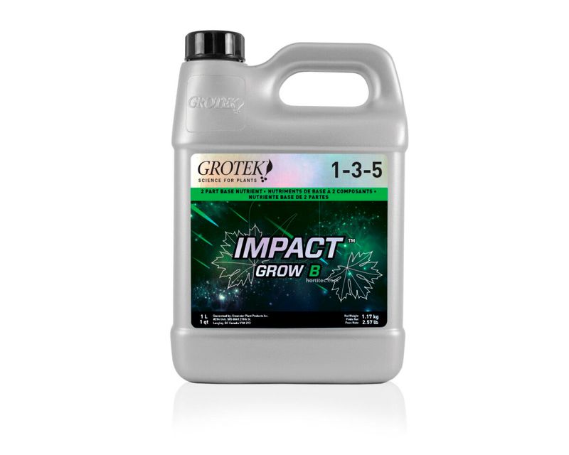 Impact Grow é uma fórmula de 2 partes baseada nas pesquisas mais recentes sobre as proporções de nutrientes necessárias durante a fase de floração da produção de plantas. Perfeito para cultivos tradicionais e também para irrigação por injeção, este produto combinado produz cachos de flores uniformes e fornece os elementos necessários para garantir que a colheita final seja a mais produtiva possível.