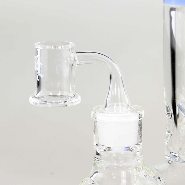 Com a base extra larga e o fundo duplo de quartzo, o banger pode armazenar calor de forma ideal e permanecer quente por mais tempo. A capacidade deste banger é generosa. O alargamento na extremidade inferior evita que o extrato suba. Além disso, as perolas de terps giram de maneira particularmente uniforme graças ao sulco. Além disso, recomendamos o uso de um Carb cap. Desta forma, o fornecimento de ar pode ser controlado para realmente aquecer a evaporação. O resultado é um vapor particularmente cheio e muito saboroso.
