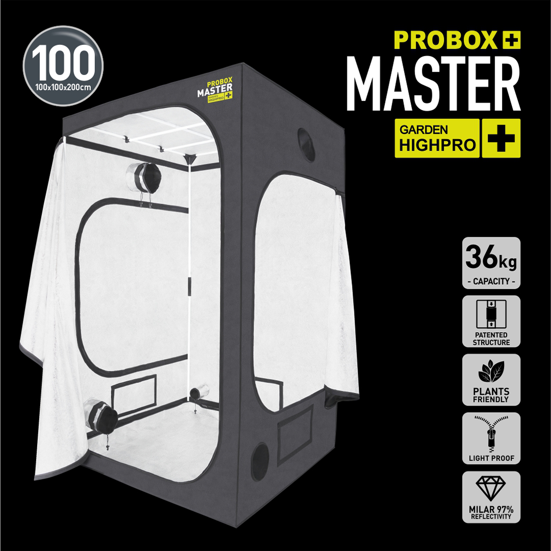 Made of certified nylon with 600 D density and internal lining of 97% aluminum Mylar reflectivity, Probox Master cabinets offer a large load capacity of up to 72 kg (see table bottom), and light-impenetrable double-stitched zippers.