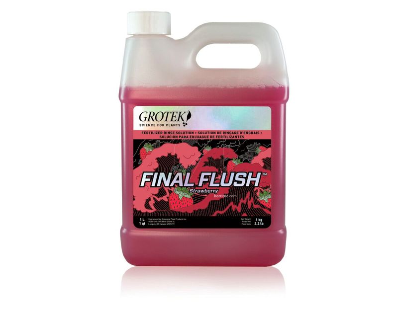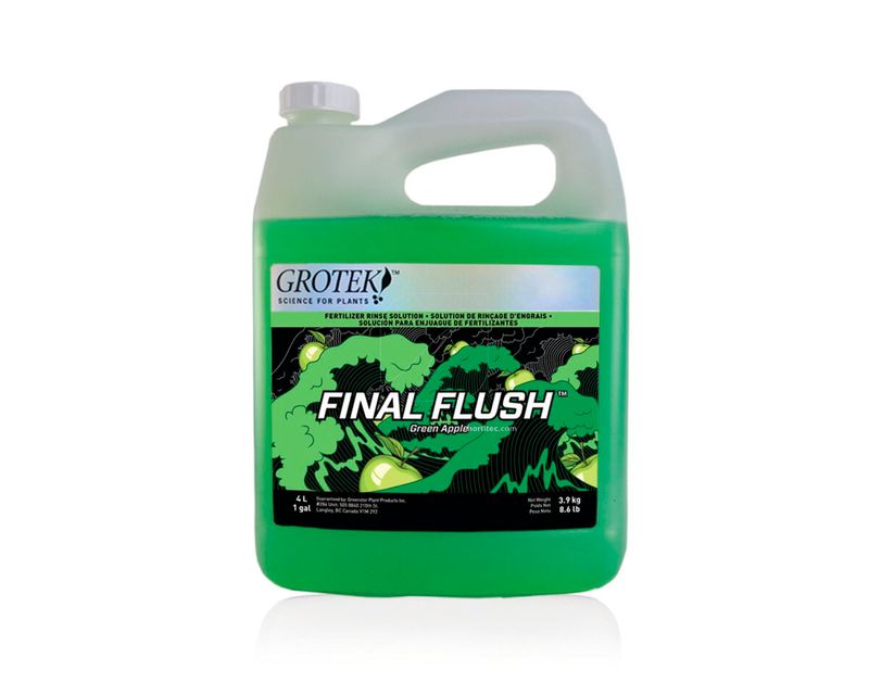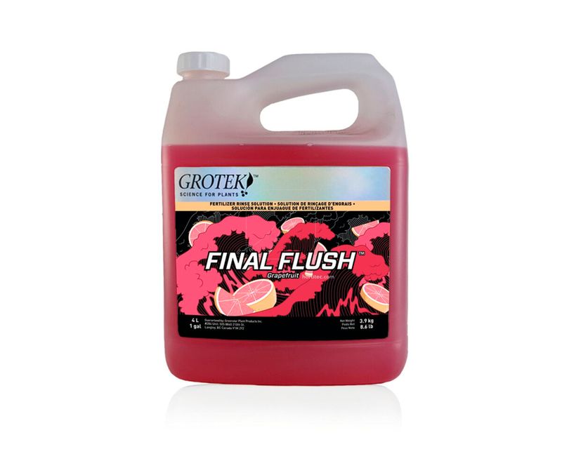 Final Flush é uma solução para remover fertilizantes do substrato. Final Flush elimina o excesso de sais de fertilizantes nas fases finais de floração e também auxilia na correção de superalimentação e dessalinização nos substratos que serão reaproveitados.