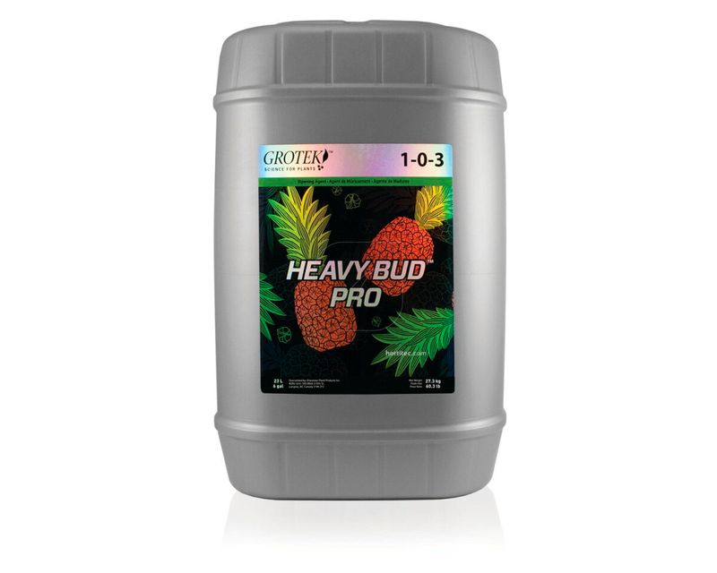 Esses nutrientes são enriquecidos com uma suspensão de oligossacarídeos à base de aminoácidos projetada para melhorar a produtividade da planta e os níveis de brix. Heavy Bud PRO possui um aminograma específico para maturação e resistência ao estresse com altos níveis de cisteína. O processo desenvolvido pela Grotek consiste em várias etapas de fermentação e fornece altos níveis de oligossacarídeos, incluindo glicose, frutose, maltose e celulose.