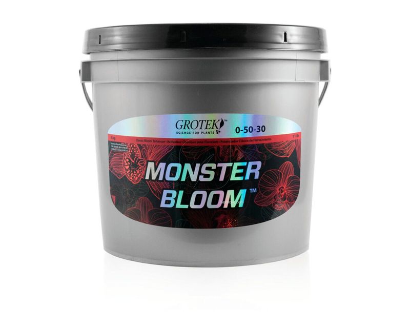 Um enriquecedor de floração de primeira linha, Monster Bloom ganhou uma reputação pela sua capacidade de fortalecer plantas durante os estágios intermediários do desenvolvimento da flor. A alta concentração de fósforo desempenha um papel importante no metabolismo da planta. O potássio na fórmula melhora a qualidade das flores e frutos, influenciando a fotossíntese, fortalecendo a produção de amido na planta.