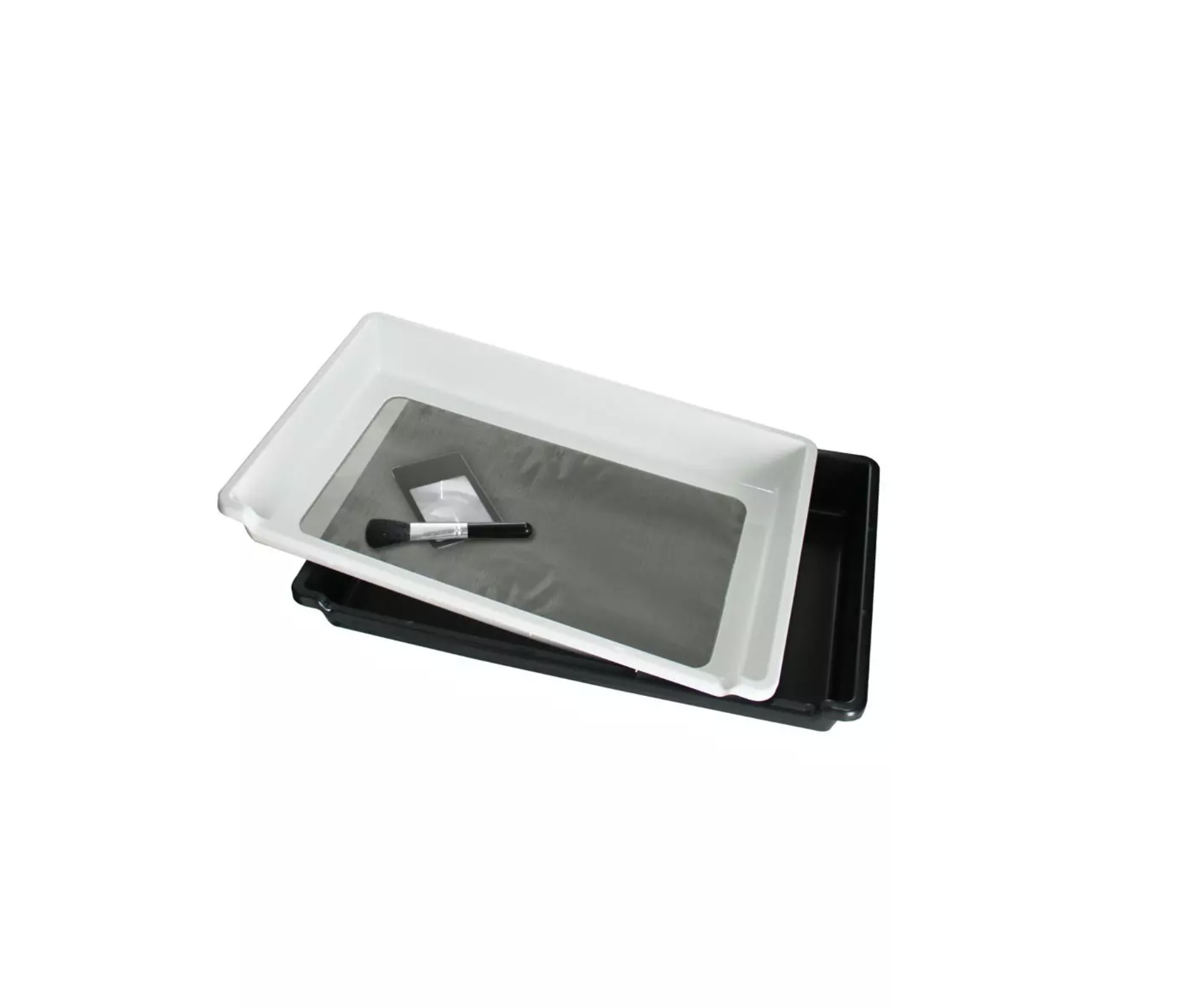 1 bandeja de acabamento de duas peças , aprox. 50 x 32,5 x 9 cm com peneira de aço inoxidável, densidade de malha 150microns 1 Lupa Botanist , prática em formato de cartão de créditoT 1 Pincel de pólen para pólen, comprimento aprox. 11 cm