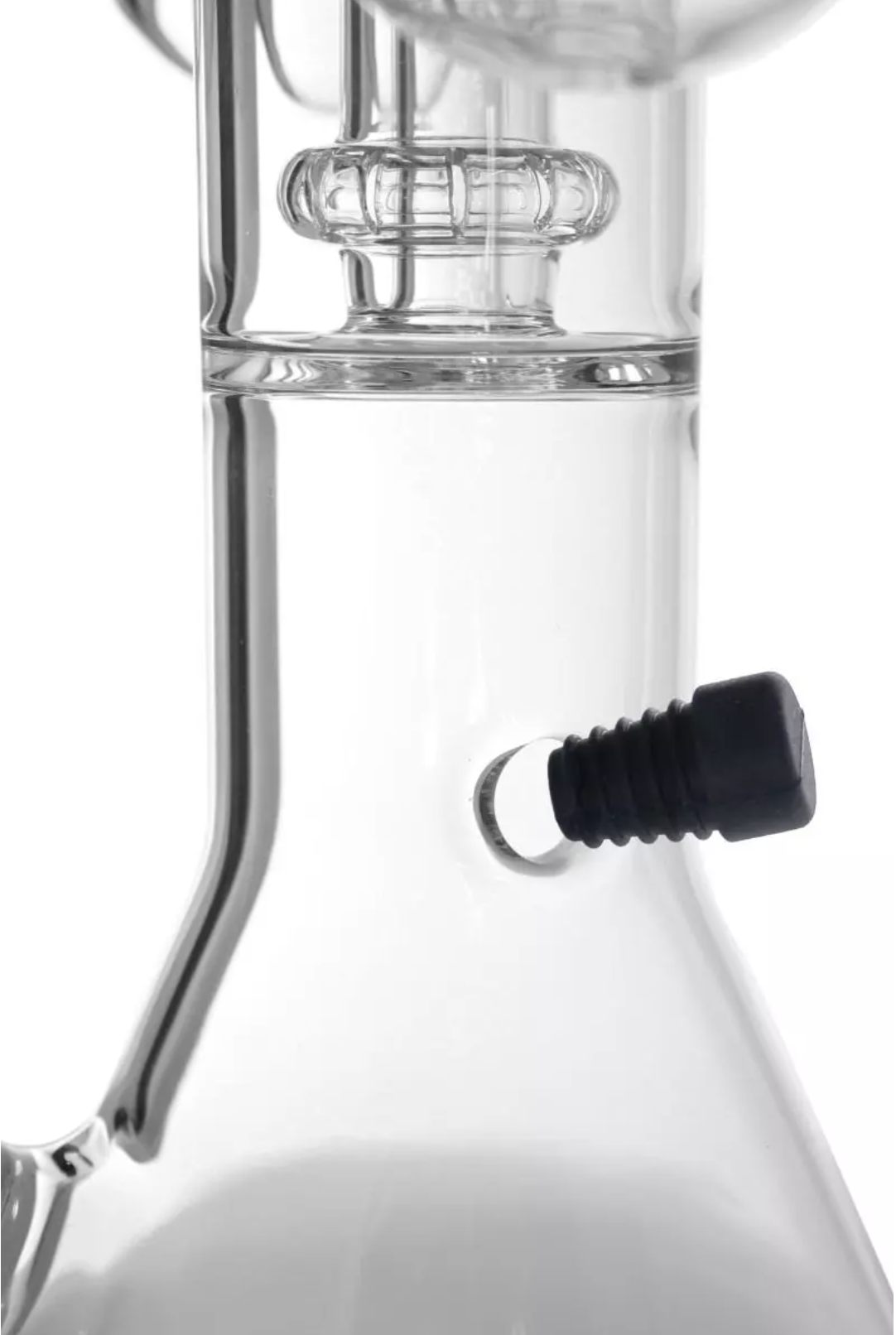 O bongo está equipado com um orifício de carburador. Isto tem a vantagem de a taça não ter de ser levantada para ser utilizada. Além disso, a limpeza e secagem do bong após o uso é simplificada. Para manter os dedos limpos enquanto fuma e para tornar a limpeza do bong ainda mais fácil, uma rolha de silicone está incluída na entrega.