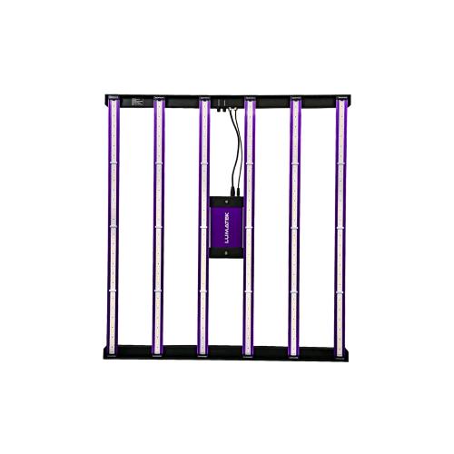 Eficiência: 2,9 µmol/J PPF: 1770 µmol/s Tensão de entrada: 220-240V Consumo de energia: 615W Pegada: 1,4x1,4m À prova d'água: IP65 Vida útil: 60.000 horas Distribuição de luz: 120° Fonte de luz: diodos Osram e LUMiLED Regulável: OFF-25%-50%-75%-100% com dimmer de luz 0-10V (incluído) Controle externo: com o painel digital Lumatek Peso: 13,5kg Dimensões: 1091x1182,4x51,9mm Espectro: Full Spectrum F BTUs (com driver anexado): 2201 BTUs/h BTU (com driver remoto): 2047 BTUs/h