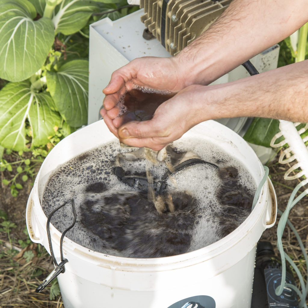 O chá de compostagem é um fertilizante vivo para as suas plantações.