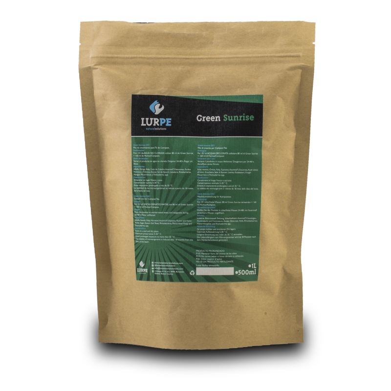 Green Sunrise é uma mistura de ingredientes premium, prontos para serem adicionados aos chás de compostagem durante a fase de crescimento das plantas.