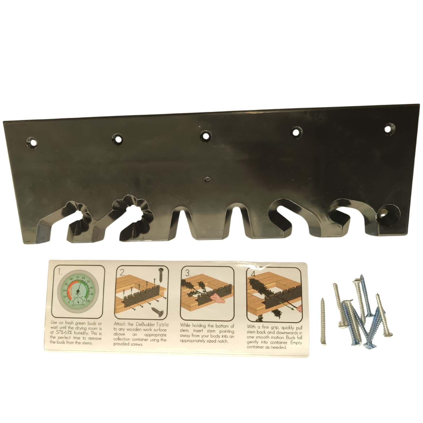 Its one-piece structure guarantees stability and durability. It easily attaches to any work surface using screws or carpenter's clamps, providing a solid base for processing plants without interruption. And it doesn't matter if you're working with thick, thin, twisted, or straight branches: its multiple slots adapt to any plant shape, without damaging or compromising the quality of your buds.