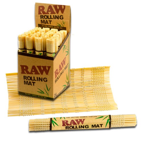 Umedeça a ponta da cola e dobre a parte inferior do rolo sobre o tabaco (apenas o tabaco, não o papel), pressione e enrole a esteira de bambu RAW, de baixo para cima.