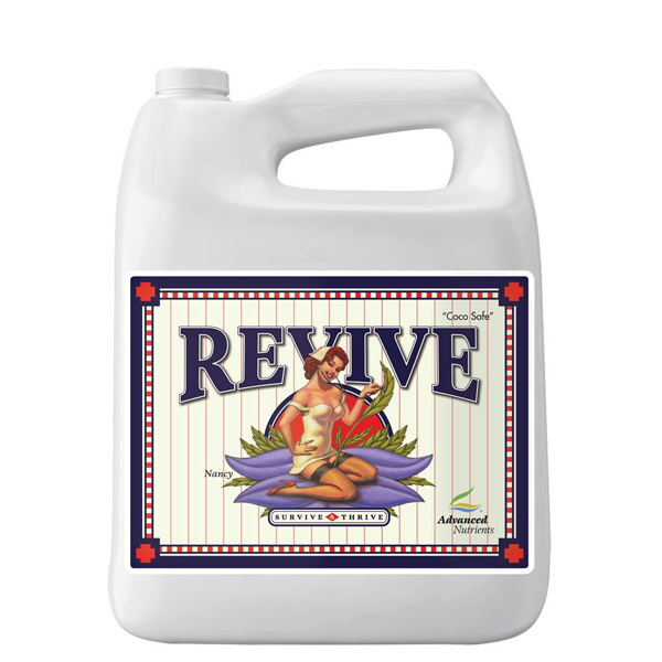 O Revive da Advanced Nutrients é um produto revolucionário que pode salvar qualquer colheita. Quando as plantas sofrem por algum motivo – por exemplo, se a bomba de água falhar ou nos esquecermos de regar as plantas, e elas murcharem (mas ainda vivas), aplicando este produto na solução de rega e de forma foliar, poderemos recuperar completamente as plantas. Em casos de fertilização excessiva, o Revive também ajuda bastante na recuperação da planta.