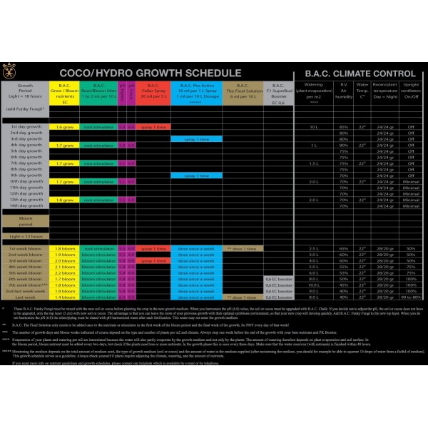 Modo de utilização › Agitar bem antes de usar › 1 a 2 ml por cada 10 litros de água › Usar nas primeiras 3 semanas › Seguir a tabela de cultivo da B.A.C.