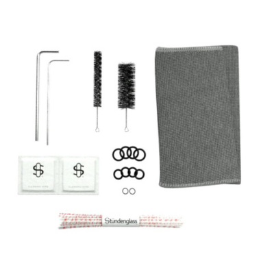 Projetado para versatilidade funcional, o Taylor Gang x Stundenglass Gravity Infuser Black and Gold Edição Limitada é um conjunto completo que inclui um kit com uma base de aquecimento feita em alumínio e vidro, mas também pode-se conectar a qualquer dispositivo de fumar ou vaporizar com encaixe macho de 14 mm. Está incluída uma mangueira de silicone de 90cm que pode ser ligada para extração direta, embora um fluxo constante de fumo através do bocal ajustável de 45°, ofereça a opção de consumo totalmente sem contato.
