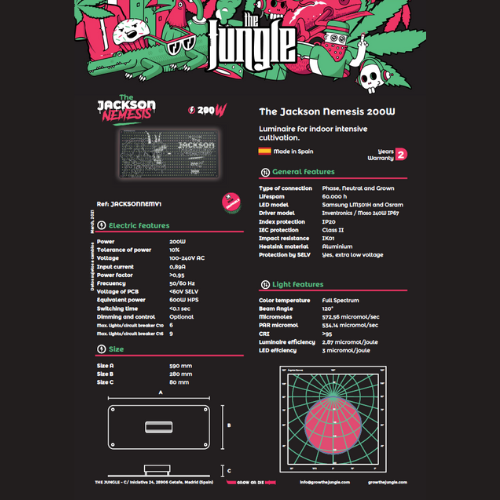 O painel LED Jackson Nemesis 200w é o resultado da evolução do modelo anterior The Jackson 250w da Grow The Jungle. Um painel de espectro completo para as fases de crescimento e floração.
